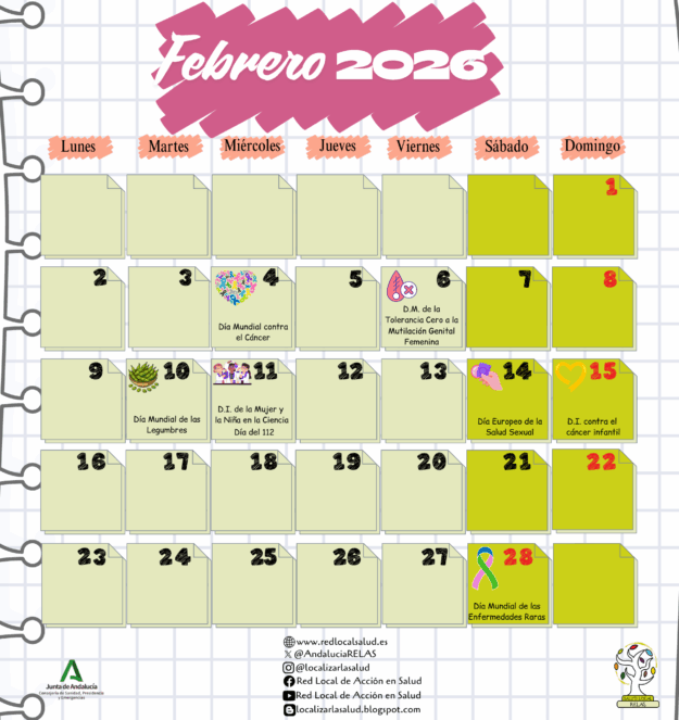 Desde la Red Local de Acción en Salud de Andalucía (RELAS), te presentamos las principales efemérides de este mes para seguir localizando la salud en tu municipio 🌍❤️