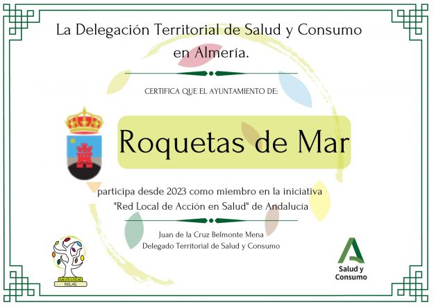El Ayuntamiento de Roquetas de Mar se ha sumado a la Red Local de Acción en Salud (RELAS) de la Consejería de Salud y Consumo de la Junta de Andalucía, comprometiéndose así a trabajar en la promoción de la salud bajo los principios de Intersectorialidad, Participación, Gobernanza, Salud en todas las políticas y Equidad en salud, a través de la elaboración y puesta en marcha de un Plan Local de Salud.