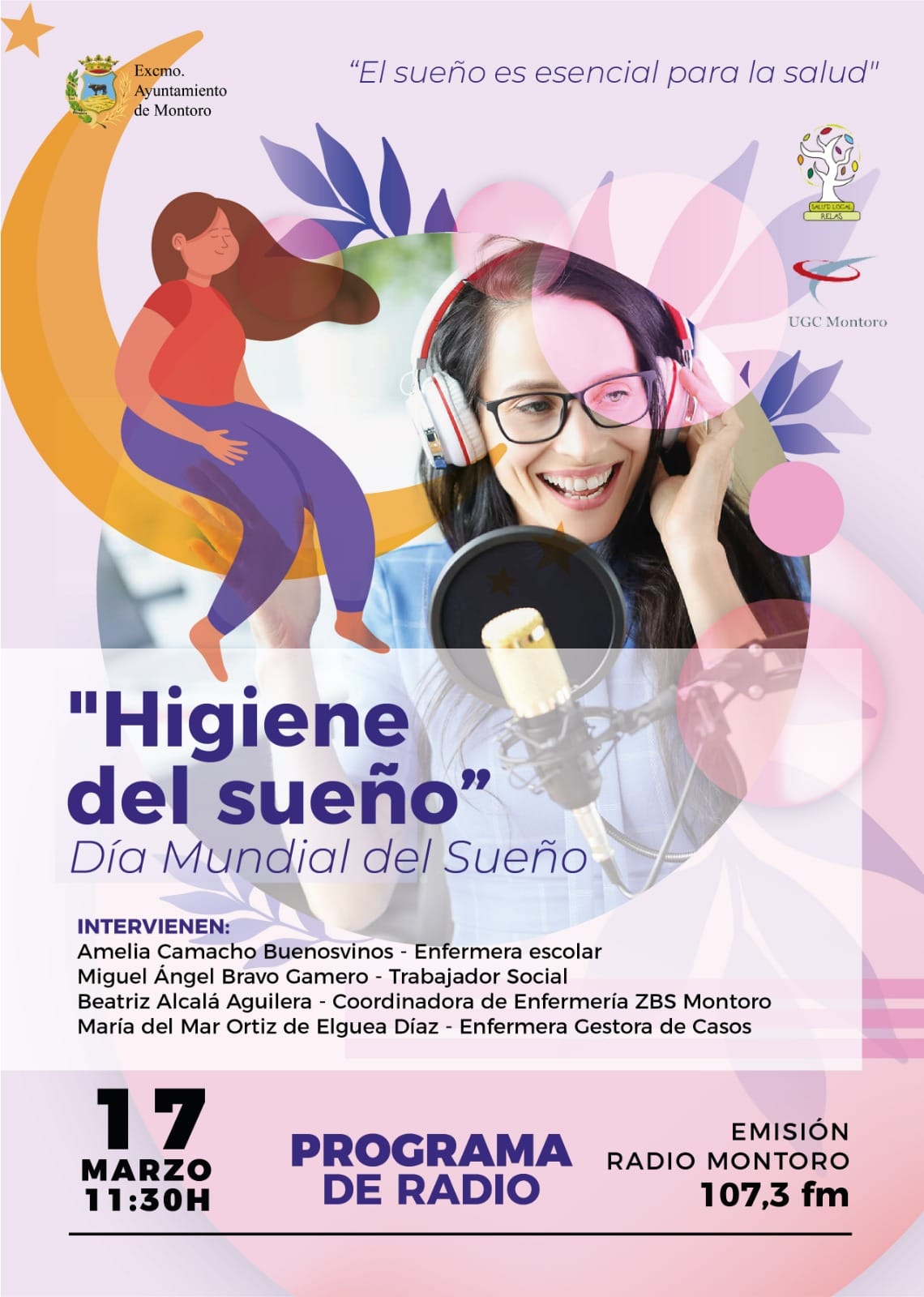 - Sesión, Programa de Radio Montoro, “ Hablamos de Salud” En conmemoración del Dia Mundial del Sueño el 17 de Marzo. El Sueño un hábito a cuidar.