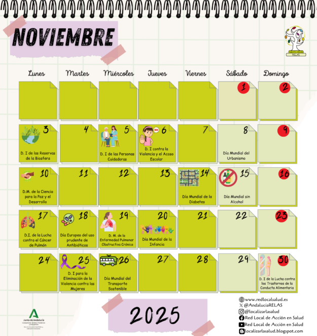 Desde la Red Local de Acción en Salud de Andalucía (RELAS), te presentamos las principales efemérides de este mes para seguir localizando la salud en tu municipio 🌍❤️