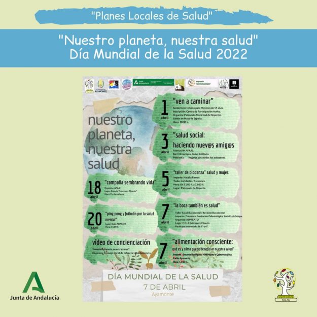 Con el lema, “Nuestro planeta, nuestra salud”, la Red Local de Acción en Salud de Andalucía (RELAS) se une, el próximo 7 de abril, a la celebración del Día Mundial de la Salud, con una campaña que reflexiona sobre los pequeños gestos que podemos llevar a cabo para mejorar la salud de nuestro planeta.