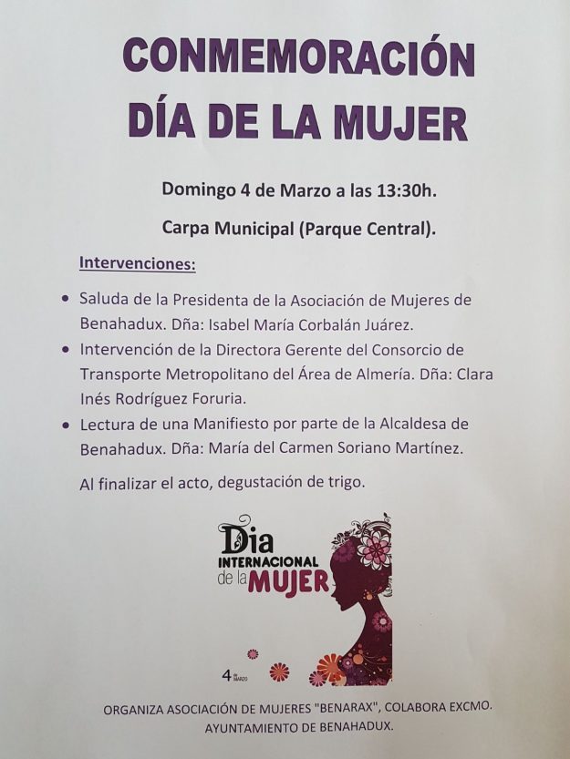 Cuevas del Almanzora. Día internacional de la mujer Por Sonia Jiménez Palenzuela1 marzo, 2018DIPTICO_DIAMUJER_2018
