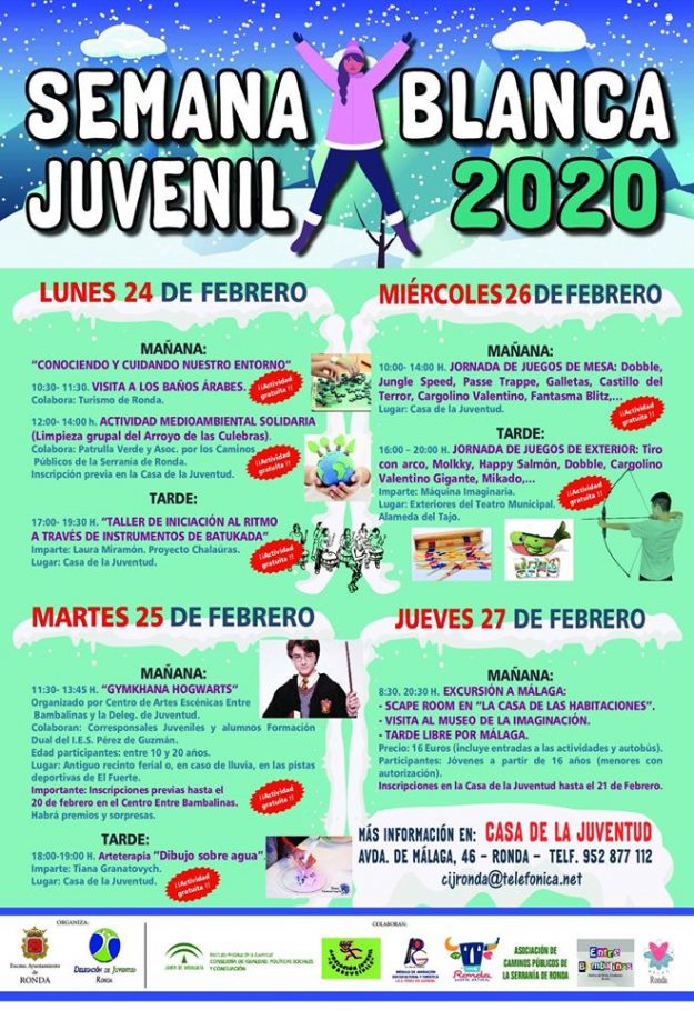 Ronda. Semana Blanca Juvenil 2020 Por Sonia Jiménez Palenzuela12 febrero, 2020Plazas limitadas Necesaria inscripción previa