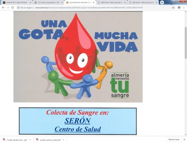 Serón Colecta de Sangre Centro de Salud 8 de abril de 17:30-21:00 horas