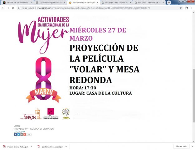 Serón Actividades del día Internacional de la Mujer Proyección de la película «Volar» y mesa redonda Casa de la Cultura 27 de marzo 17:30