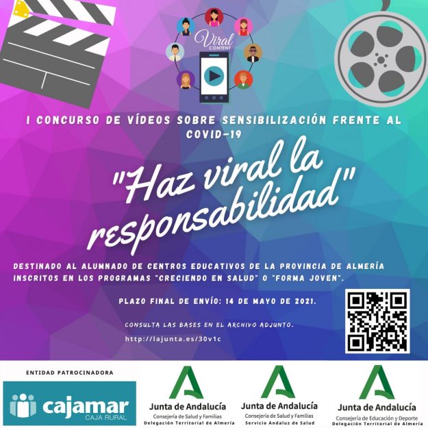 Bases del concurso (PDF) Las Consejerías de Salud y Familias y Educación de la Junta de Andalucía han presentado el concurso escolar “Haz viral la responsabilidad”, que implica a la población escolar en la realización de un Spot o campaña de sensibilización, orientada a otros jóvenes y adolescentes, sobre ayudar a prevenir el contagio y…